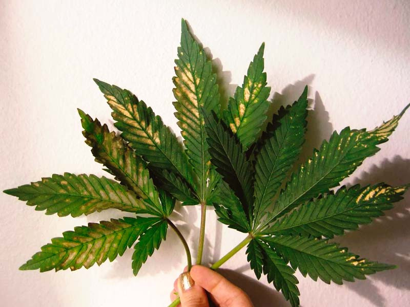 Световые ожоги – нередкий случай, когда лампы в боксе находятся слишком близко к верхушкам растений, или мощность светильников велика. Это может серьезно замедлить рост кустов. Чтобы устранить проблему, увеличивают расстояние между лампами и верхушками растений, либо уменьшают интенсивность излучаемого света.